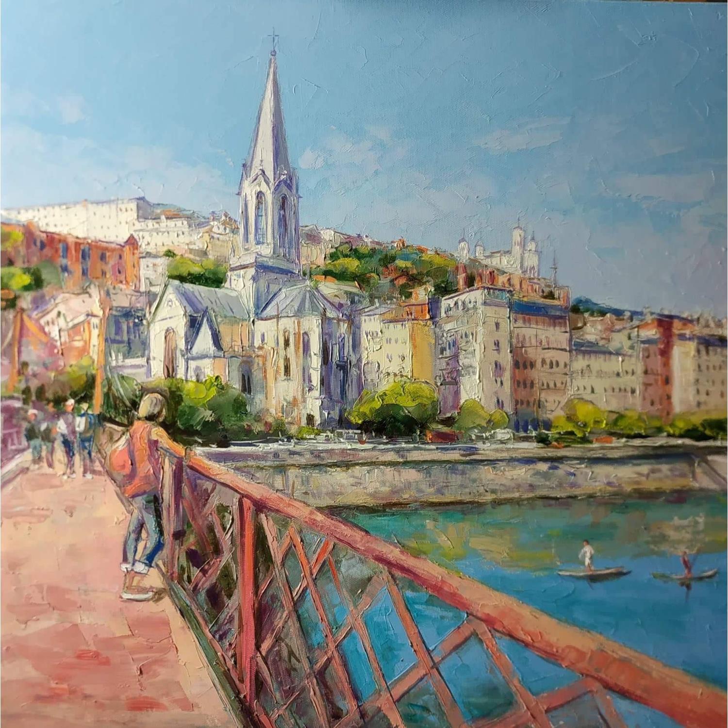 Passerelle Paul CouturierPintura Passerelle Paul Couturier por Arkady | Pintura Figurative Landscapes Urban Oil