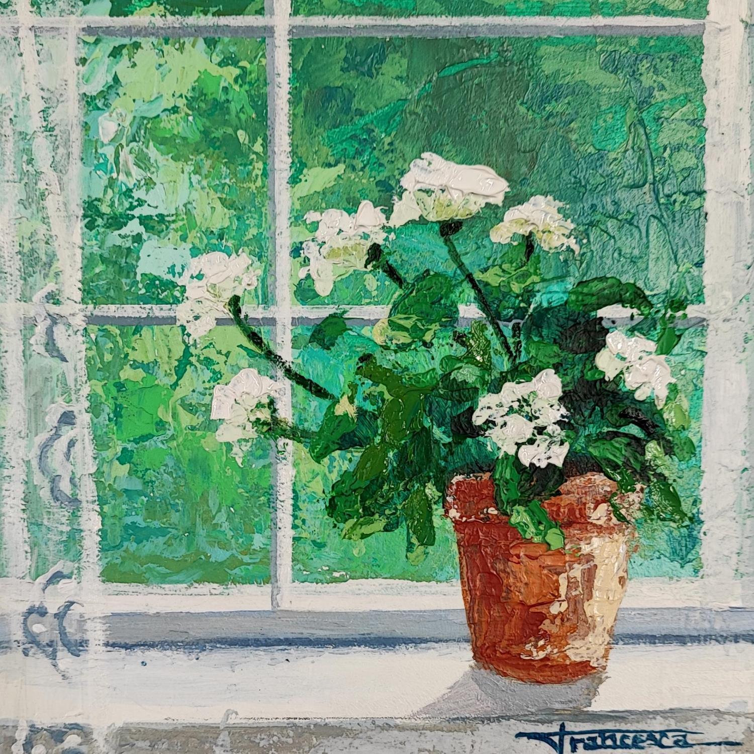 This unique and original contemporary artwork "Geraneo blanco" on the subject of Life style has been created by the contemporary artist Escobar Francesca.
