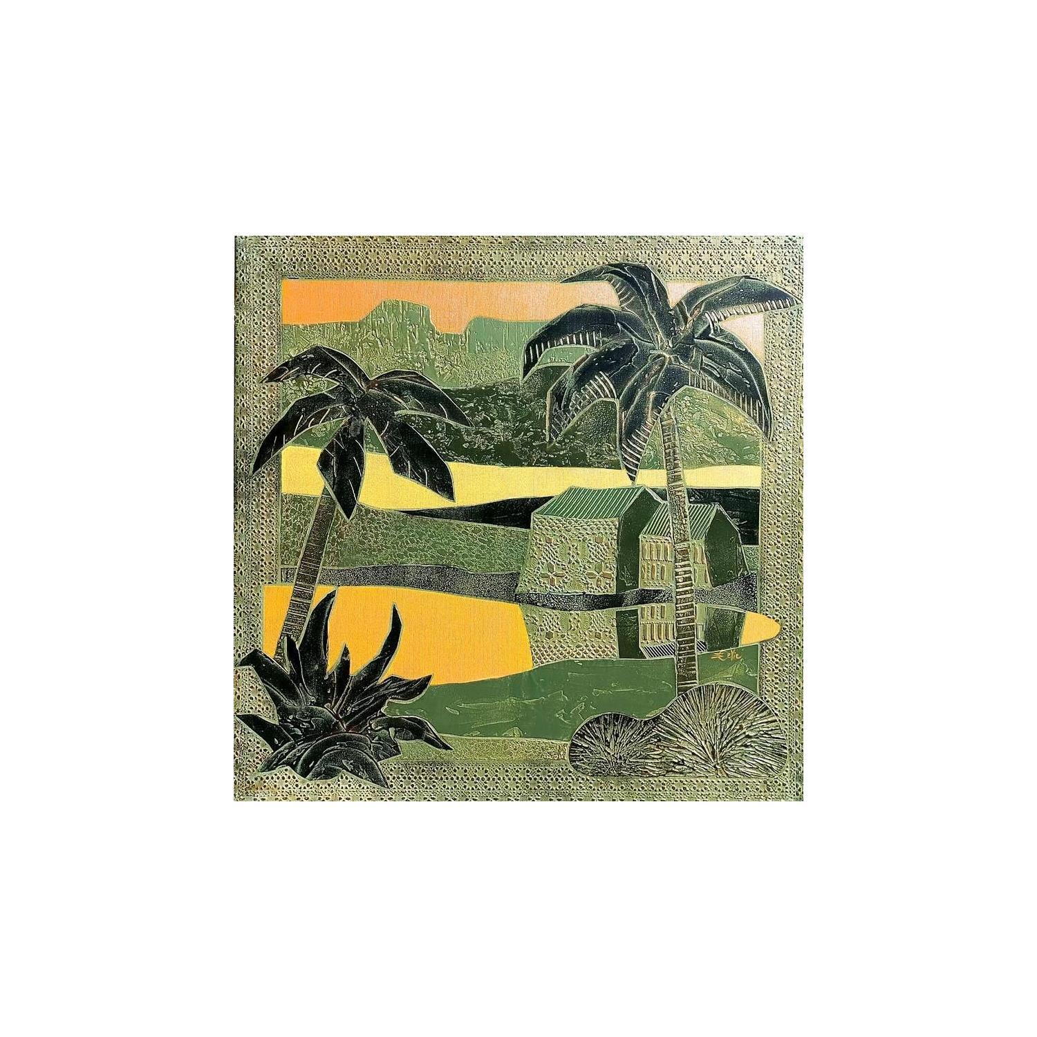 This unique and original contemporary artwork "Crépuscule sous les palmiers" has been created by the contemporary artist Devie Bernard .