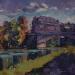 The artist used oil paint and palette knife impastos to create this special small-sized painting.