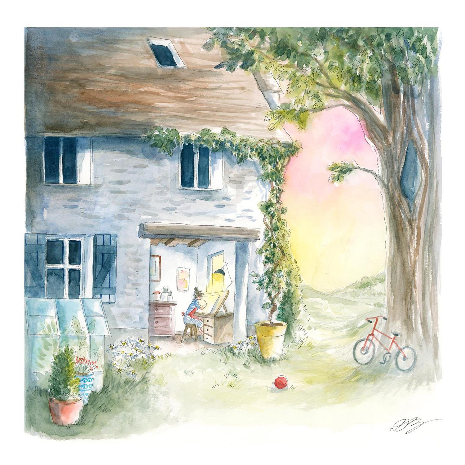 This unique and original contemporary artwork "Atelier campagne" on the subjects of Landscapes, Life style has been created by the contemporary artist Balme Delphine.