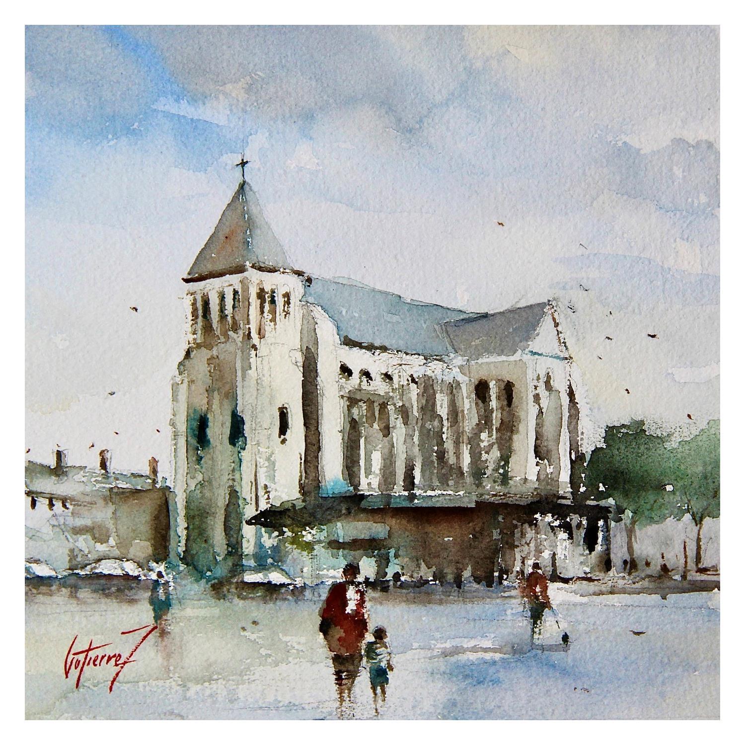 Tours - L'église Saint JulienPintura Tours - L'église Saint Julien por Gutierrez | Pintura Impressionism Urban Watercolor