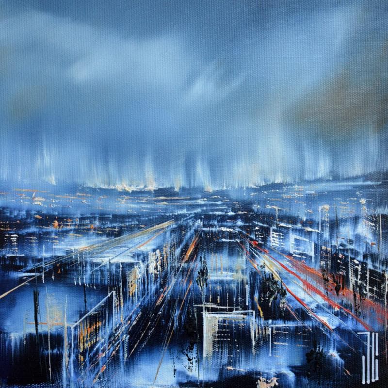The contemporary artwork Vue sur la ville is a modern painting from the artist Jérôme Guillet. This is a contemporary painting, unique and originale, Urban style.