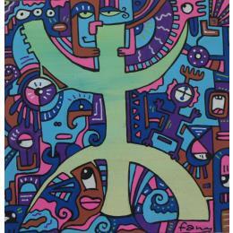 This unique and original contemporary artwork "Amazigh" was created by contemporary artist Fanny. The artist used POSCA markers and acrylic paint to create this small format painting with a singular style. The symbol represented means "Freedom" for the Amazigh (Berber people).