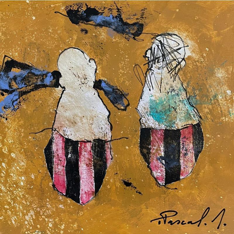 Born in 1964 in Montélimar, Pascal began working at 16 years of age. Driven by his passion for art, he made his first exhibitions in parallel. Then "because painting cannot be shared," he decided to open his studio - gallery in the Gard. There he tried many techniques, from watercolour to lithography, and even India ink, forming and satisfying his artistic curiosity. Sticking to academic drawing at first, Pascal then experimented for a long time with abstraction. After seven years, he left his workshop to paint in peace at home. Once again, his curiosity led him to explore new horizons, but this time it was through travelling that the artist will satisfy his thirst for discovery. A great observer of the human condition, he was witness to cruelty and death as well as happiness and life. Pascal lived in Mexico for five years where he participated in numerous exhibitions and definitively abandoned abstraction for figuration. Back in France, he would never leave his characters again.
