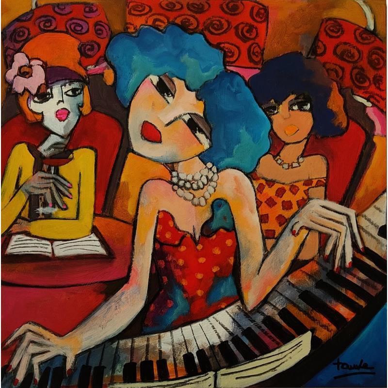 This unique and original contemporary artwork "Le piano bleu " on the subject of Life style has been created by the contemporary artist Fauve.