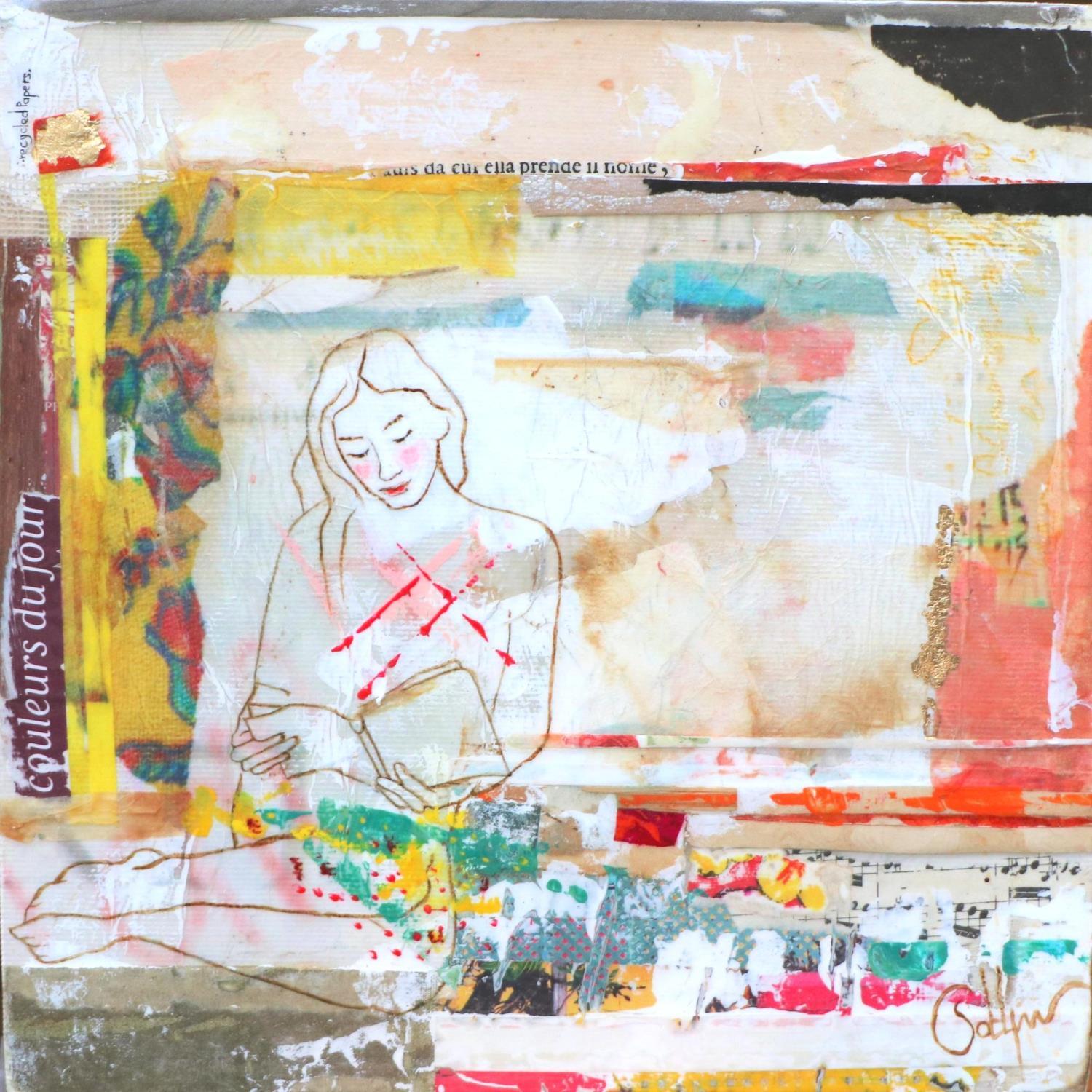 Sablyne's mixed media: ink, acrylic paint, dry pastel, collage art, photography, upcycling, paper art.