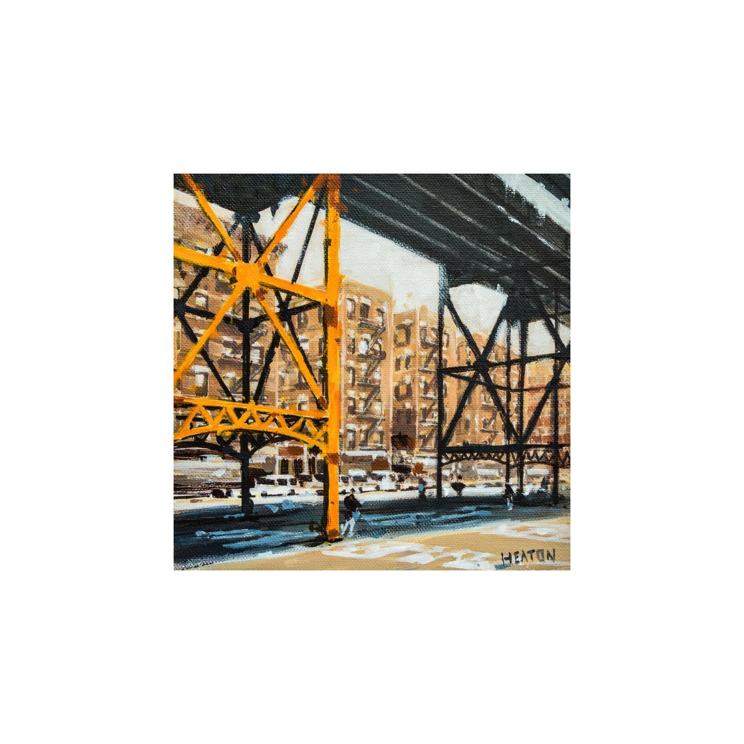 Pintura Unoerneath the highrise por Heaton Rudyard | Pintura Figurative Urban Oil Acrylic