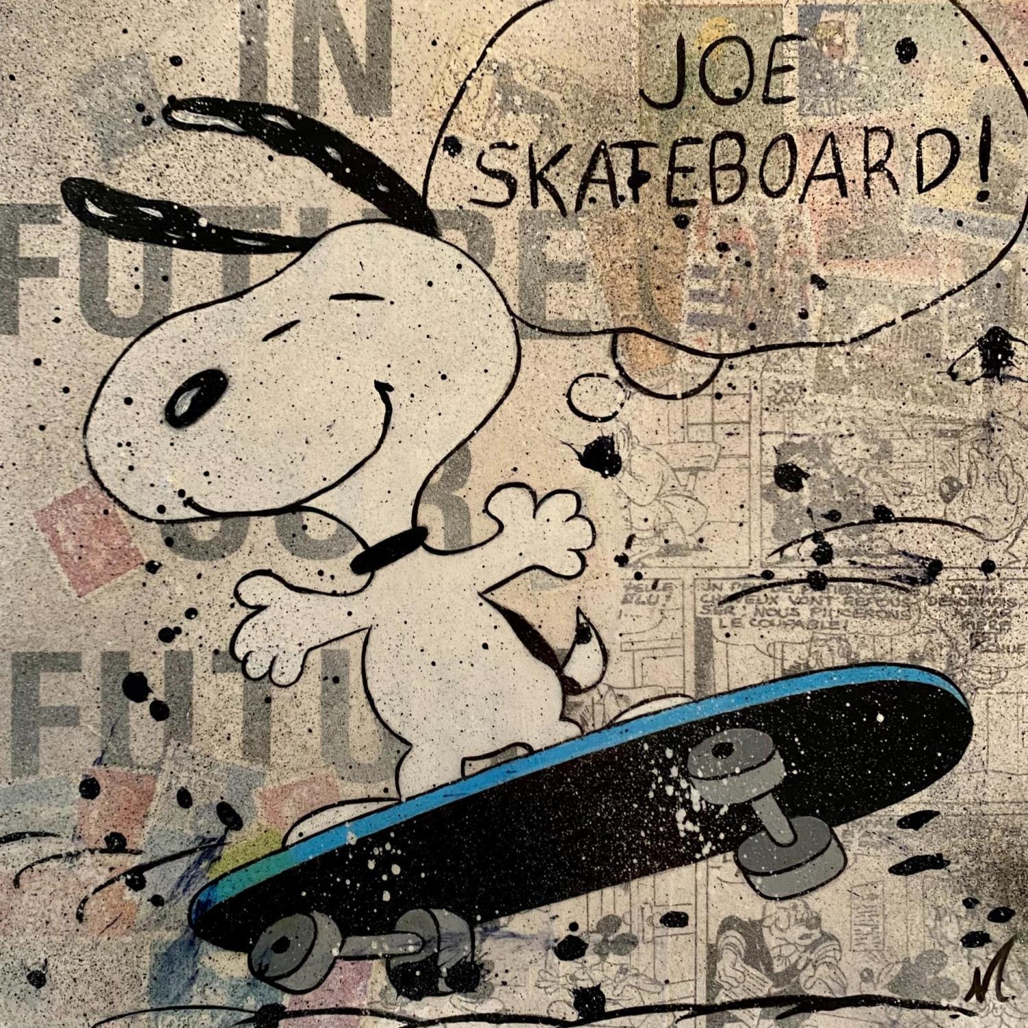 This unique and original contemporary artwork "JOE skate" on the subject of Pop icons has been created by the contemporary artist Marie G. .