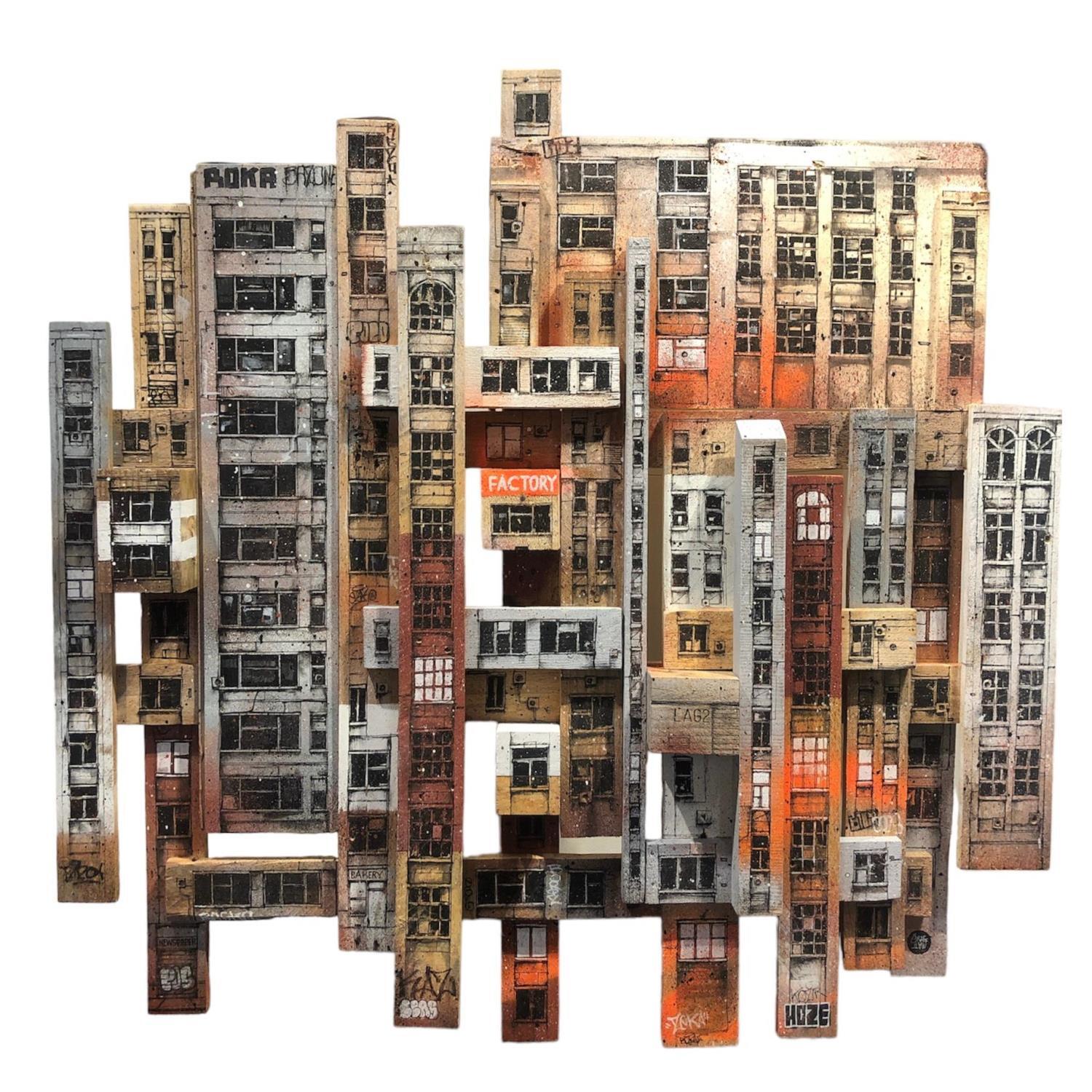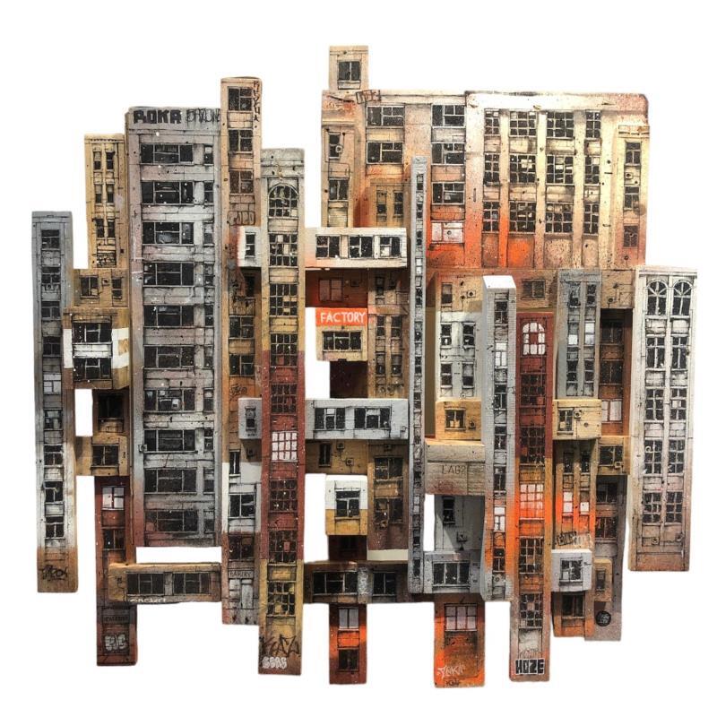 This unique and original contemporary artwork "Factory" on the subject of Urban has been created by the contemporary artist Graffmatt.