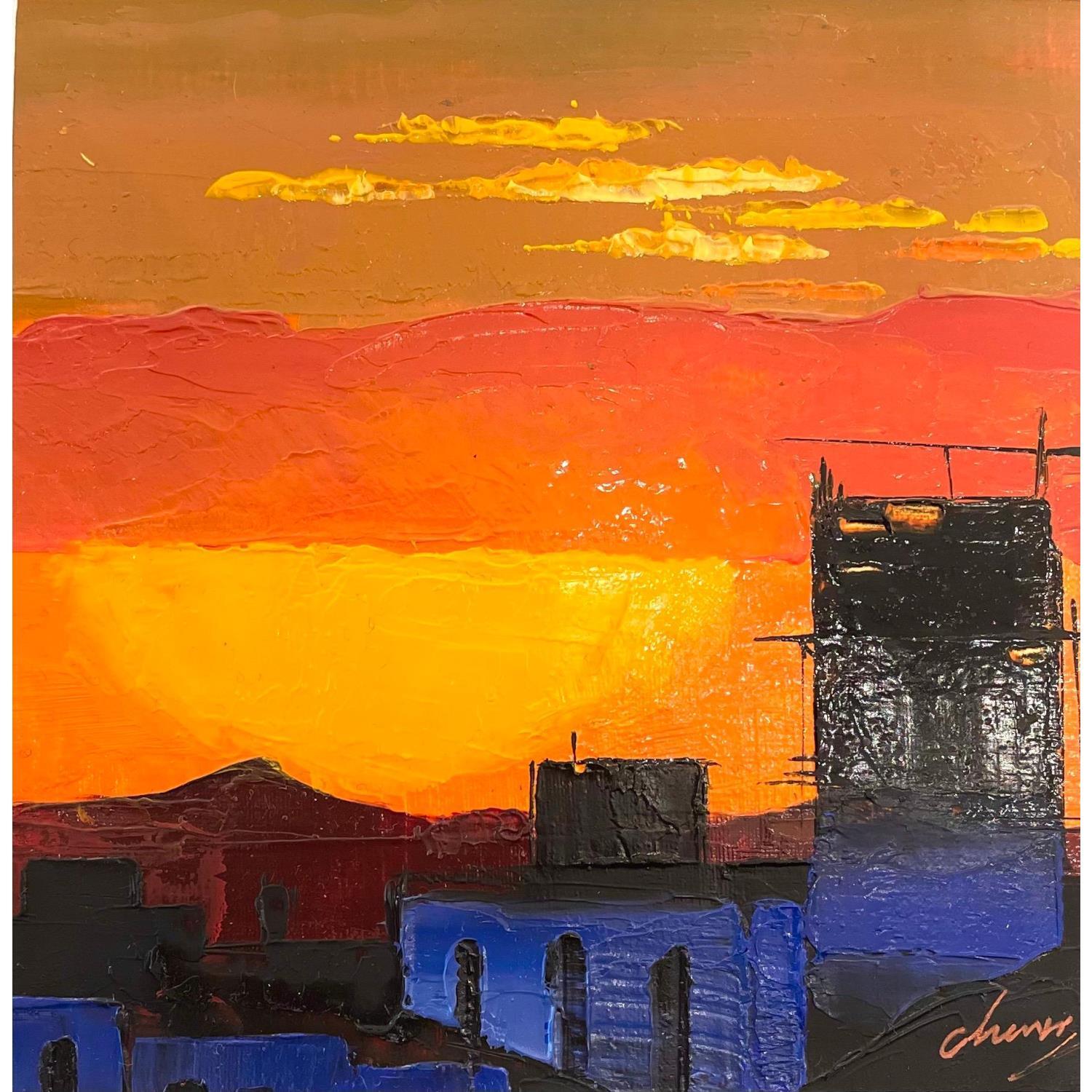 This unique and original contemporary artwork "Urban sunset" on the subject of Landscapes has been created by the contemporary artist Chen Xi.