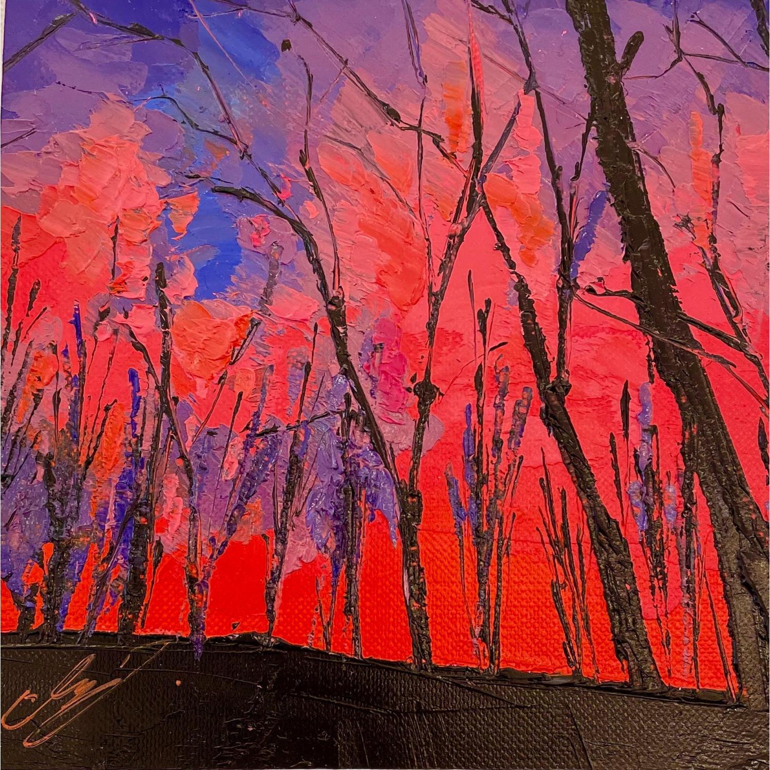 This unique and original contemporary artwork "Coucher de soleil dans les bois" has been created by the contemporary artist Chen Xi.