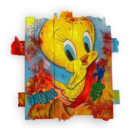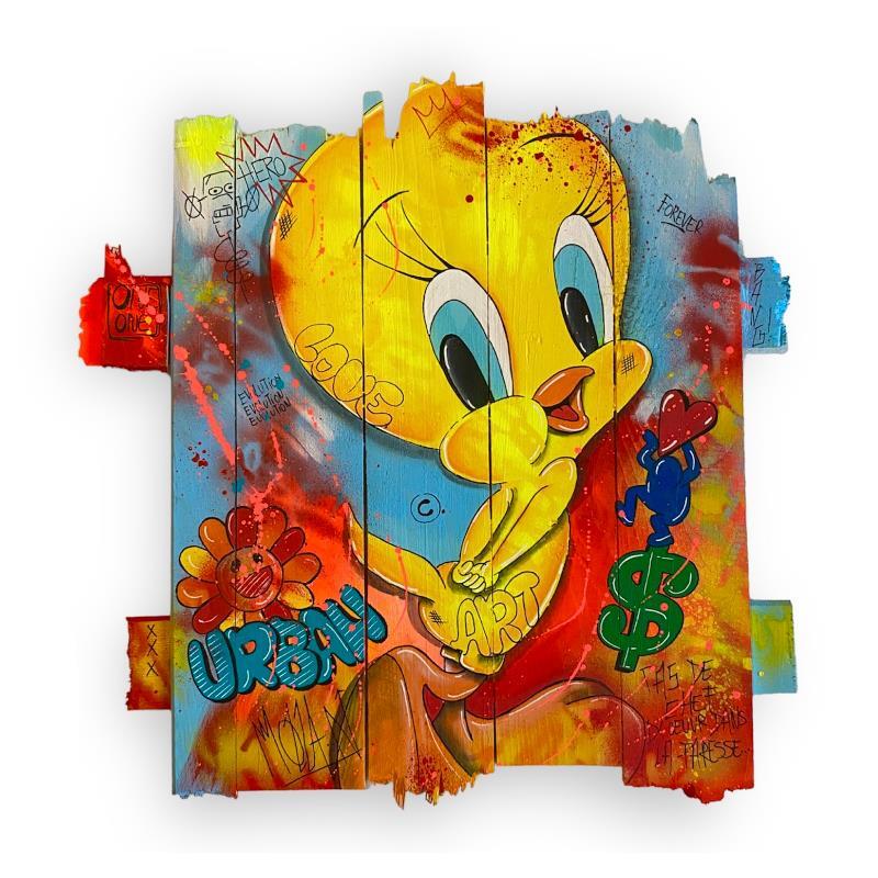 This unique and original contemporary artwork "Titi" on the subject of Pop icons has been created by the contemporary artist Molla Nathalie .