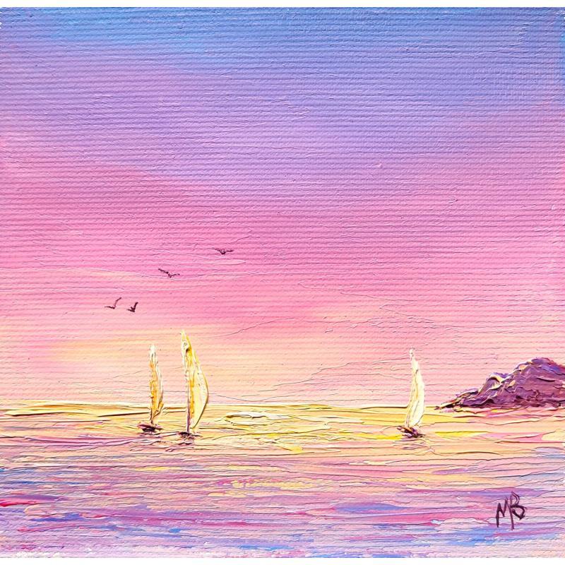 This unique and original contemporary artwork "Lumière dorée sur les voiliers" on the subject of Landscapes has been created by the contemporary artist Blandin Magali.