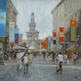 Pintura Central street of Milan por Lokotska Katie  | Pintura Figurative Urban Oil