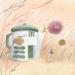 This unique and original contemporary artwork "Green house and flowers" was created by contemporary artist Marjoline Fleur.