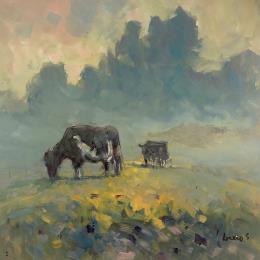 This unique and original contemporary artwork "Aussi près des vaches" on the subjects of Nature, Landscapes has been created by the contemporary artist Greco Salvatore.