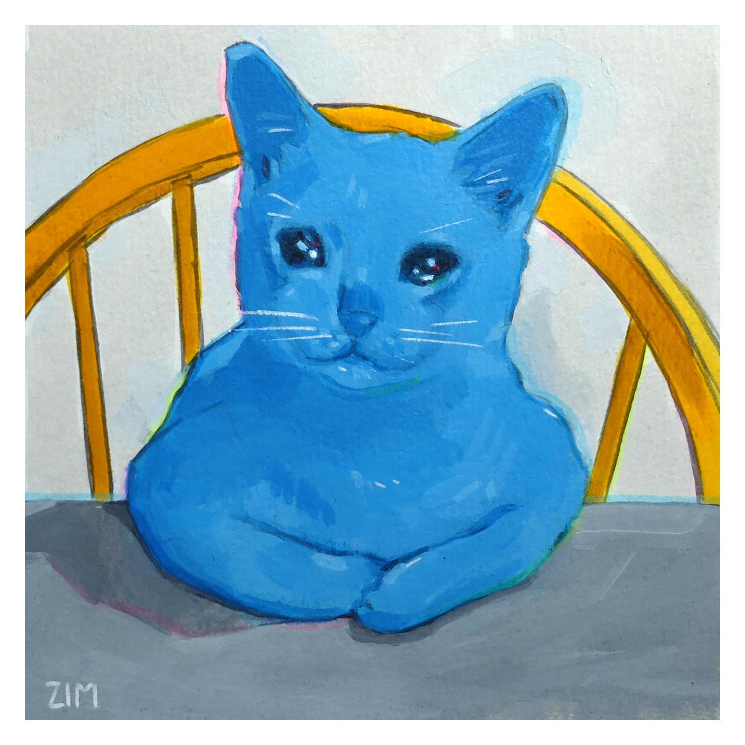 This unique and original work of contemporary art "BlueKat.03" was created by the contemporary artist ZIM.