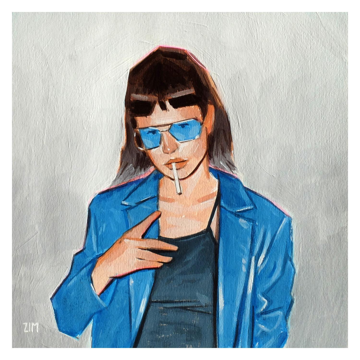 This unique and original work of contemporary art “Woman in blue 6” was created by contemporary artist ZIM. The artist used the acrylic technique to create this small format painting on paper in Figurative style.