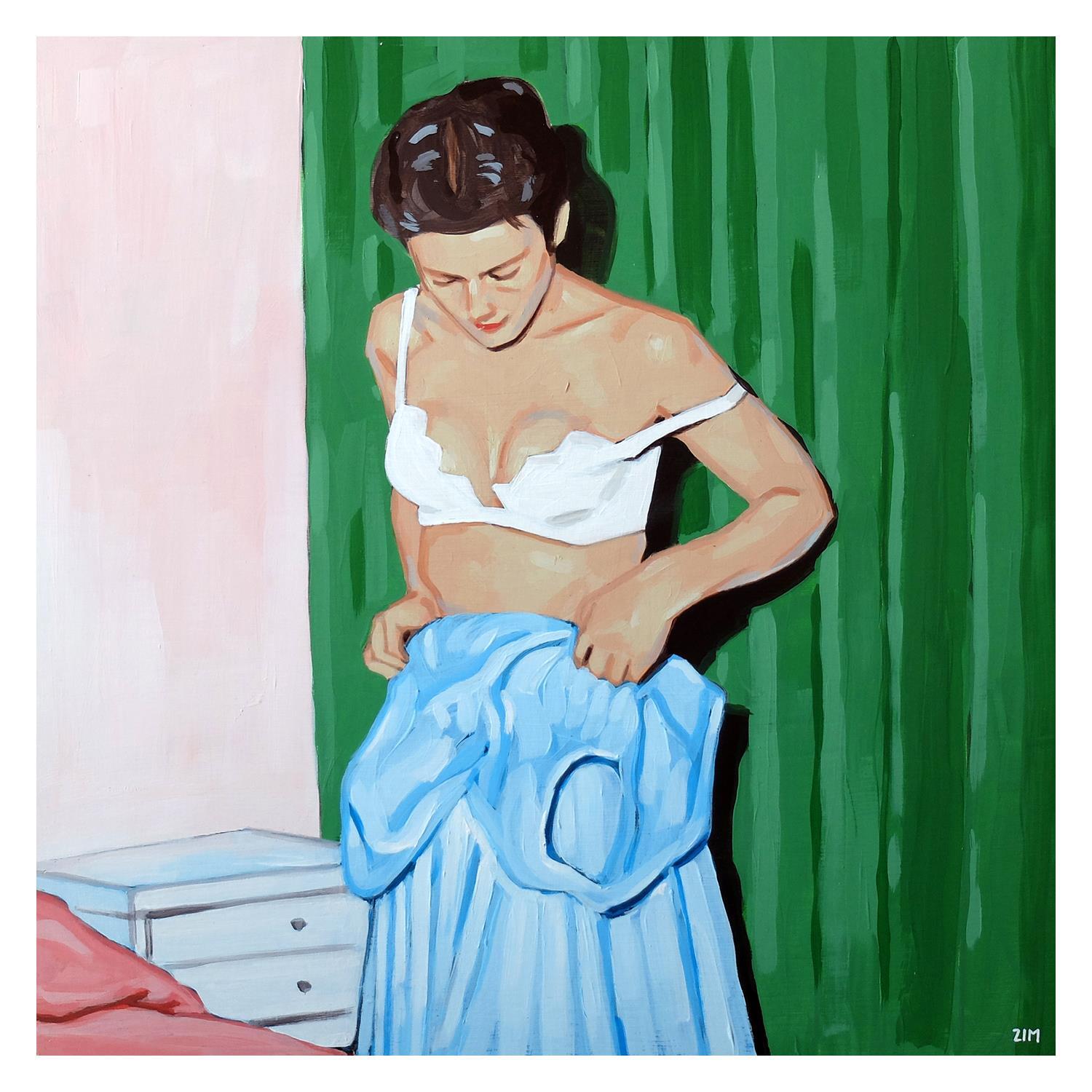Pintura The blue dress por ZIM | Pintura Figurative Portrait Landscapes Life style Acrylic