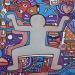This unique and original contemporary art piece "Little dude" was created by contemporary artist Fanny using POSCA markers to create this small wooden street art style painting.