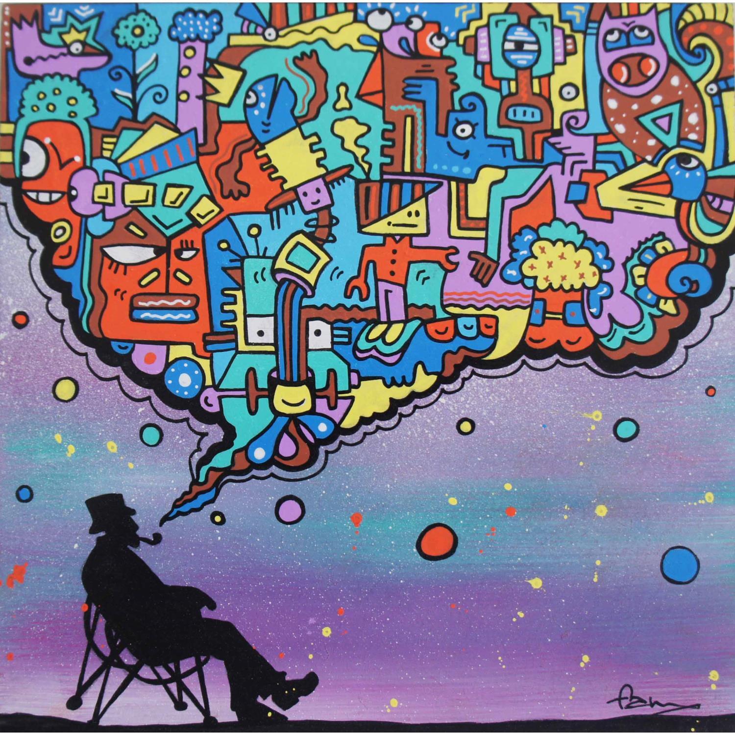 This unique and original contemporary art piece "Just chill" was created by contemporary artist Fanny. The artist used POSCA markers to create this small wooden street art style painting.