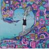 This unique and original contemporary art piece "Aisance" was created by contemporary artist Fanny. The artist used POSCA markers and acrylic paint to create this small wooden Street Art style painting.