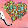 This unique and original contemporary art piece "Big Love" was created by contemporary artist Fanny. The artist used POSCA markers and acrylic paint to create this small wooden Street Art style painting.