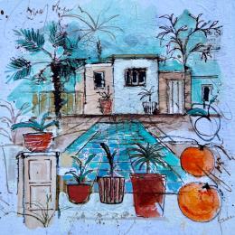 This unique and original contemporary artwork "douceur du soir" on the subjects of Landscapes, Life style has been created by the contemporary artist Colombo Cécile.