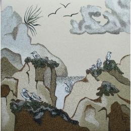 It was during a stay in New Caledonia that Laurence JOVYS was introduced to the art and technique of sand painting, so delicate and singular. On her return to France, she naturally devoted herself to creation, combining her interest in natural sand paintings with her passion for the maritime environment. Aquatic fauna, beaches, seabirds, seaweed...