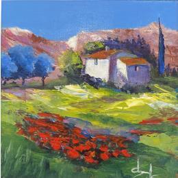 This unique and original contemporary artwork "Paysage de Provence coquelicot" on the subjects of Landscapes, Nature has been created by the contemporary artist Degabriel Véronique.