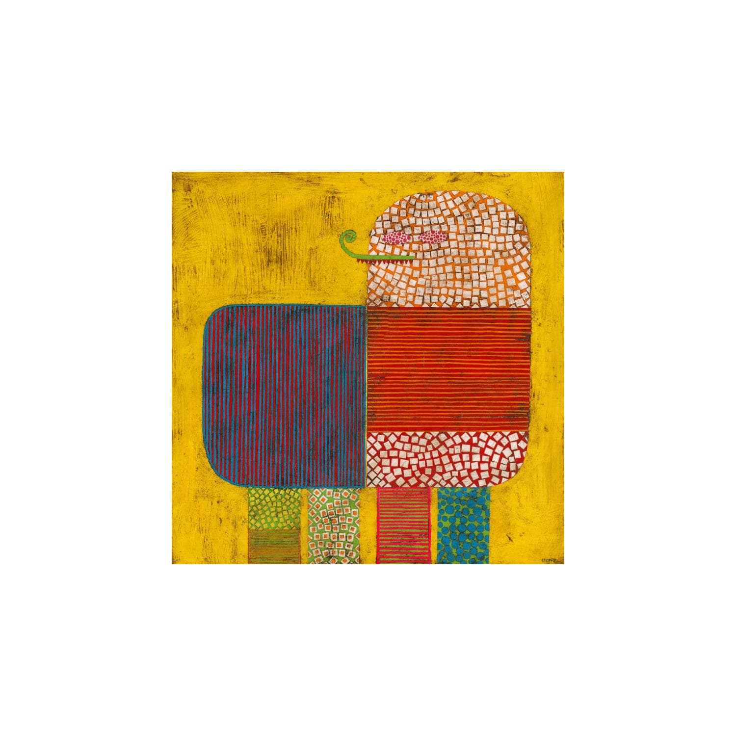 Gustavo spent his childhood in Realico, a small town lost in the Argentine Pampas. Besides the artistic activities experienced in his neighbourhood, an encounter with art would amaze and influence him; during a school trip to Buenos Aires, he attended a retrospective of the surrealist artist Joan Miró. At 17, he moved to General Pico for his studies. At the time he hesitated between art and veterinarian studies, but quickly his instinct led him to choose an artistic path. He completed classical training for 5 years at the university and acquired a solid foundation in art history and philosophy and experimented with different techniques. At 21 he moved to Chili and opened a studio in Santiago de Chile. For seven years he expressed his desire to create on his canvases and began to make a living from his work. Gustavo interweaves his South American origins and his intellectual attraction for Europe to create a unique universe; a harmony between indigenous and colonial art.