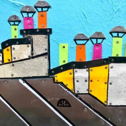 Pintura L'Été à Paris por Lovisa | Pintura Pop-art Urban Acrylic Gluing Posca Gold leaf Upcycling