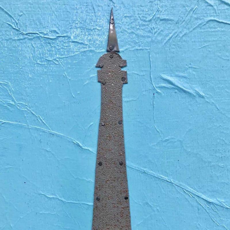 The artist used Gluing, Gold leaf, Posca, Upcycling, Acrylic media on Wood to create this Pop-art, Large size painting.