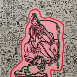 Belladone describes herself as "just a colorful girl". After studying Fine Arts, Art History, Applied Arts, crafts and artistic mediation, the young woman naturally turned to painting, mixing the codes of these different fields to create a multivitamin cocktail.