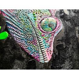 This unique and original contemporary artwork "CAMELEONIDES" on the subjects of Animals, Nature has been created by the contemporary artist Geiry.