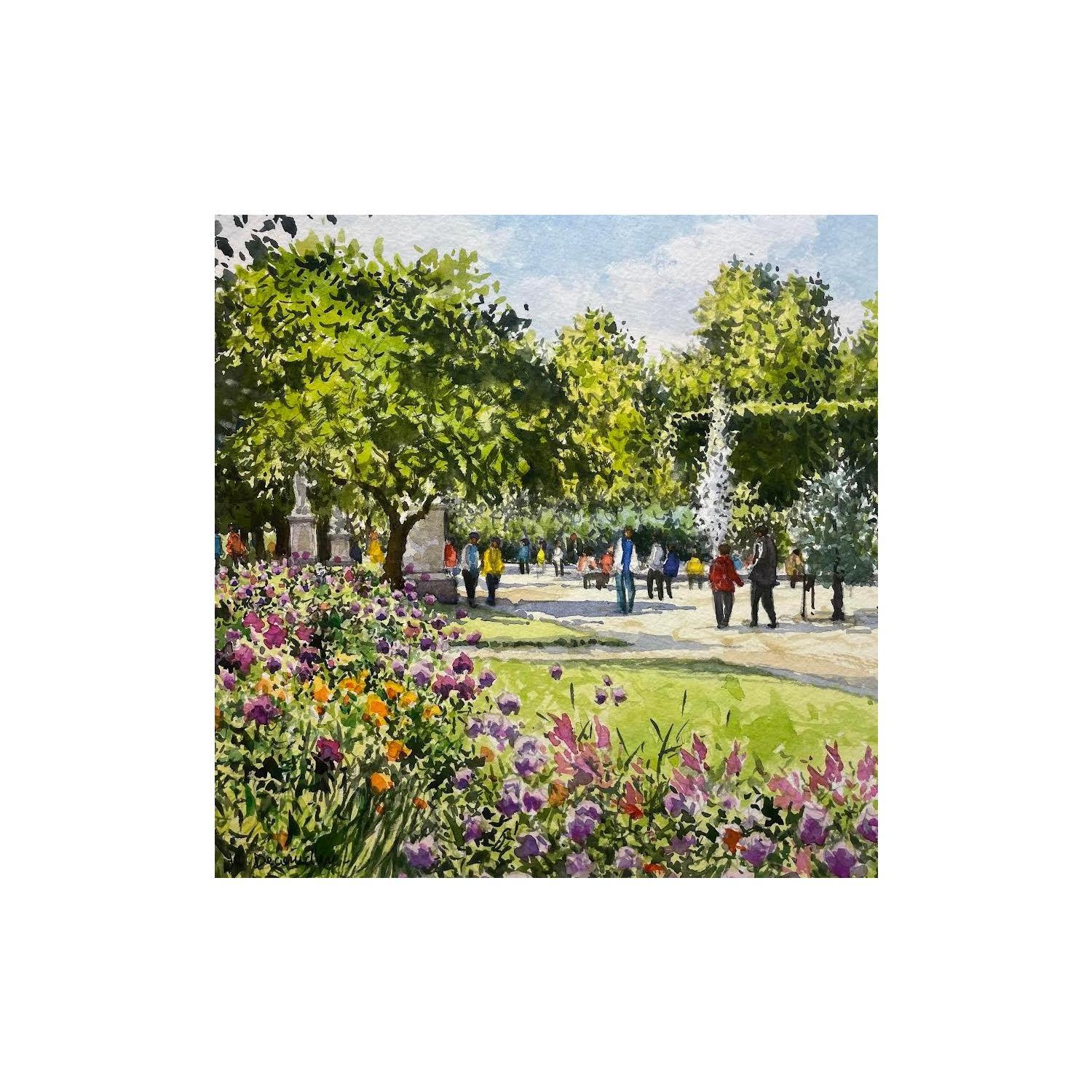 Pintura Paris le jardin des Tuileries por Decoudun Jean charles | Pintura Figurative Watercolor