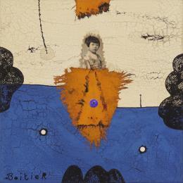 The artist used various techniques to create this small-format painting on canvas in the Art Singulier style.