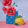 This unique and original contemporary artwork "F2 Poppies with Lemon" was created by contemporary artist Sally B.