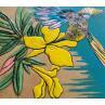 The artist used various techniques to create this small-format Pop art-style painting on wood.