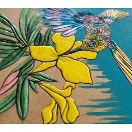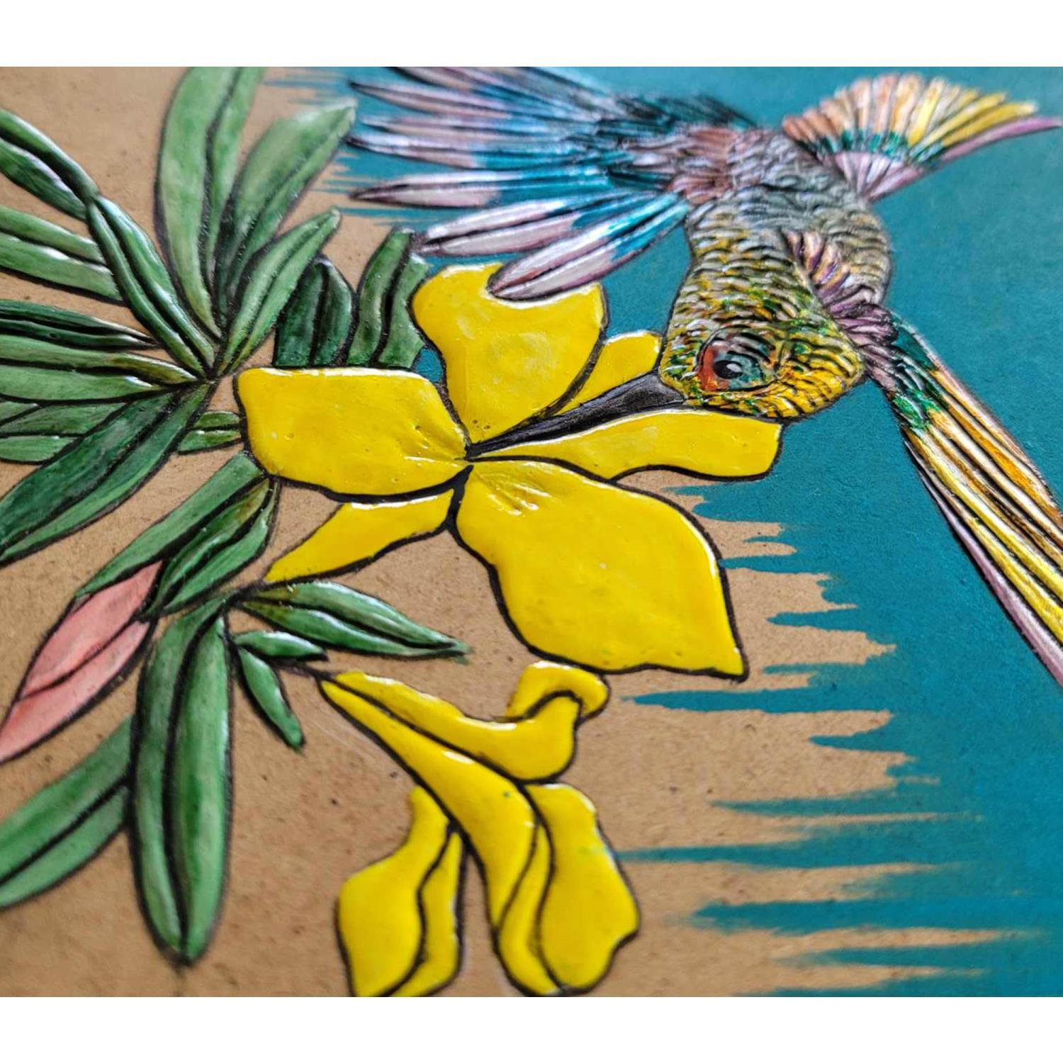 Pintura COLIBRI ARC EN CIEL por Geiry | Pintura Subject matter Nature Animals Wood Acrylic Silver leaf Pigments Marble powder