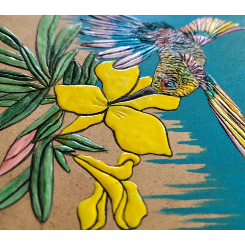 COLIBRI ARC EN CIELPintura COLIBRI ARC EN CIEL por Geiry | Pintura Subject matter Nature Animals Wood Acrylic Silver leaf Pigments Marble powder