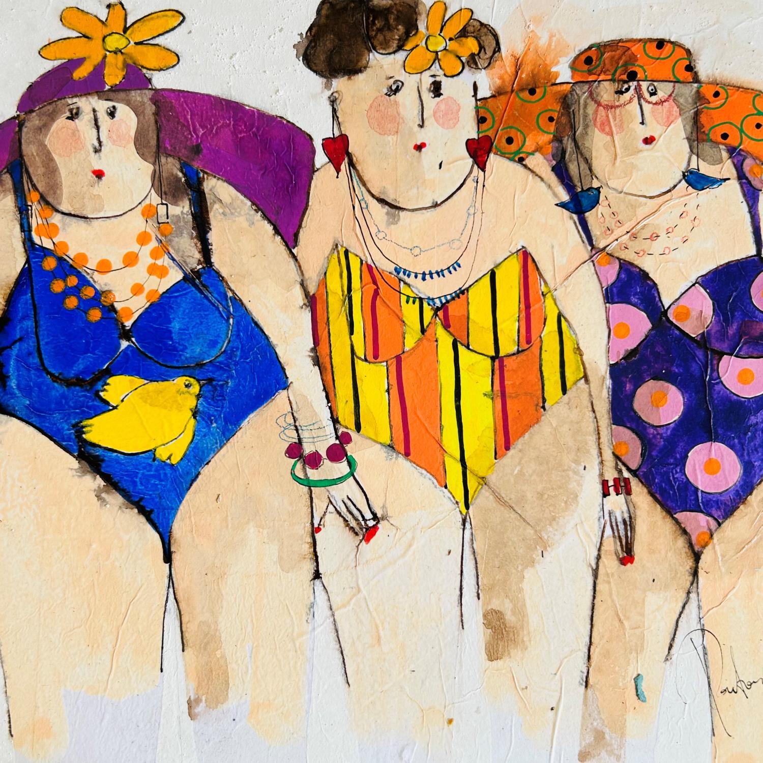 The artist used Watercolor, Acrylic, Gluing, Ink, Pastel, Pigments media on Wood to create this Figurative, Small size painting.