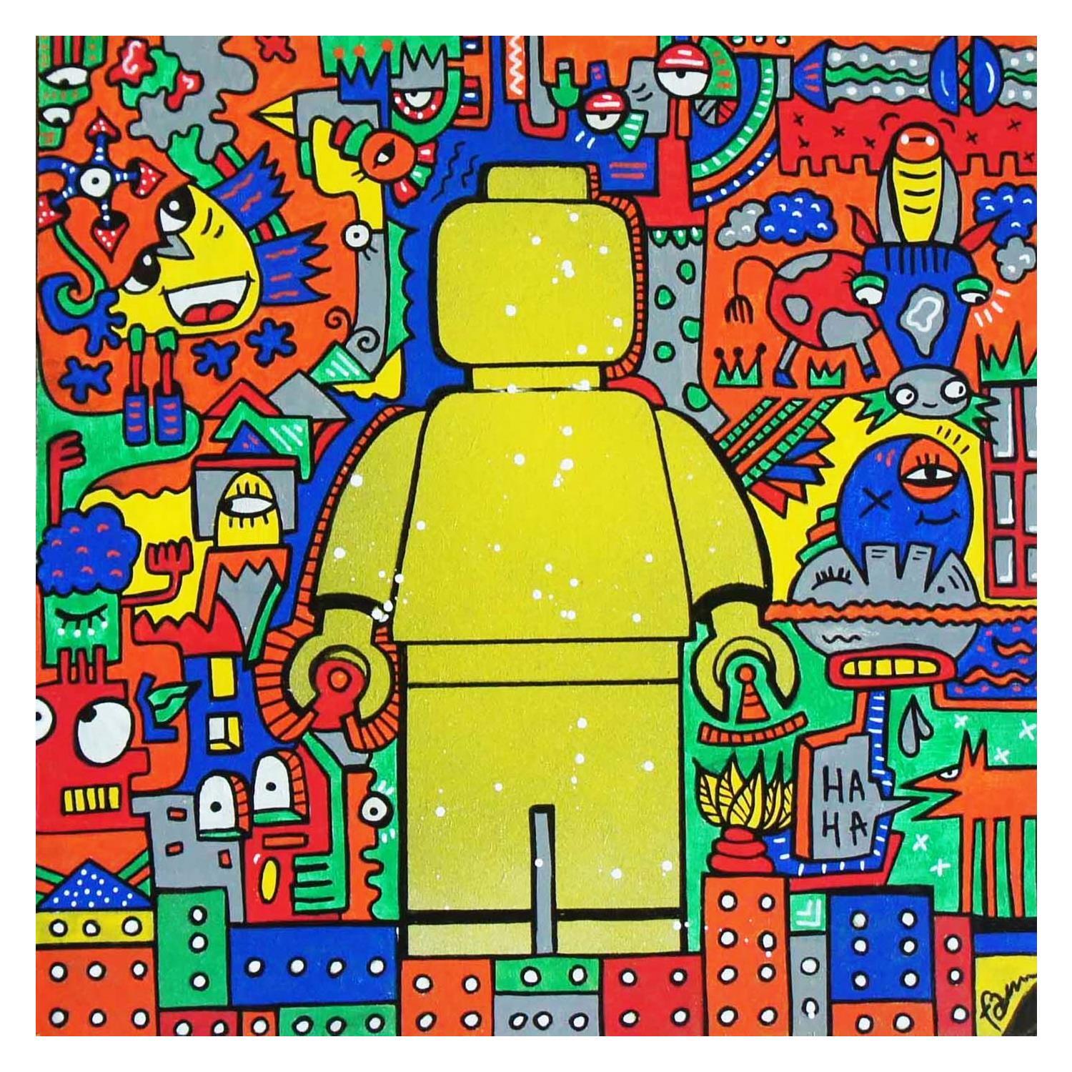 This unique and original contemporary artwork "L'EGO" was created by contemporary artist Fanny. The artist used acrylic paint and POSCA markers to create this small-format Street Art-style painting on wood.