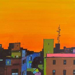 This unique and original contemporary artwork "The city before sunset" on the subject of Urban has been created by the contemporary artist Chen Xi.