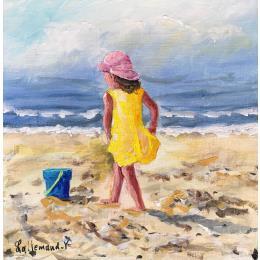 This unique and original contemporary artwork "Petite fille sur la plage" on the subject of Marine has been created by the contemporary artist Lallemand Yves.
