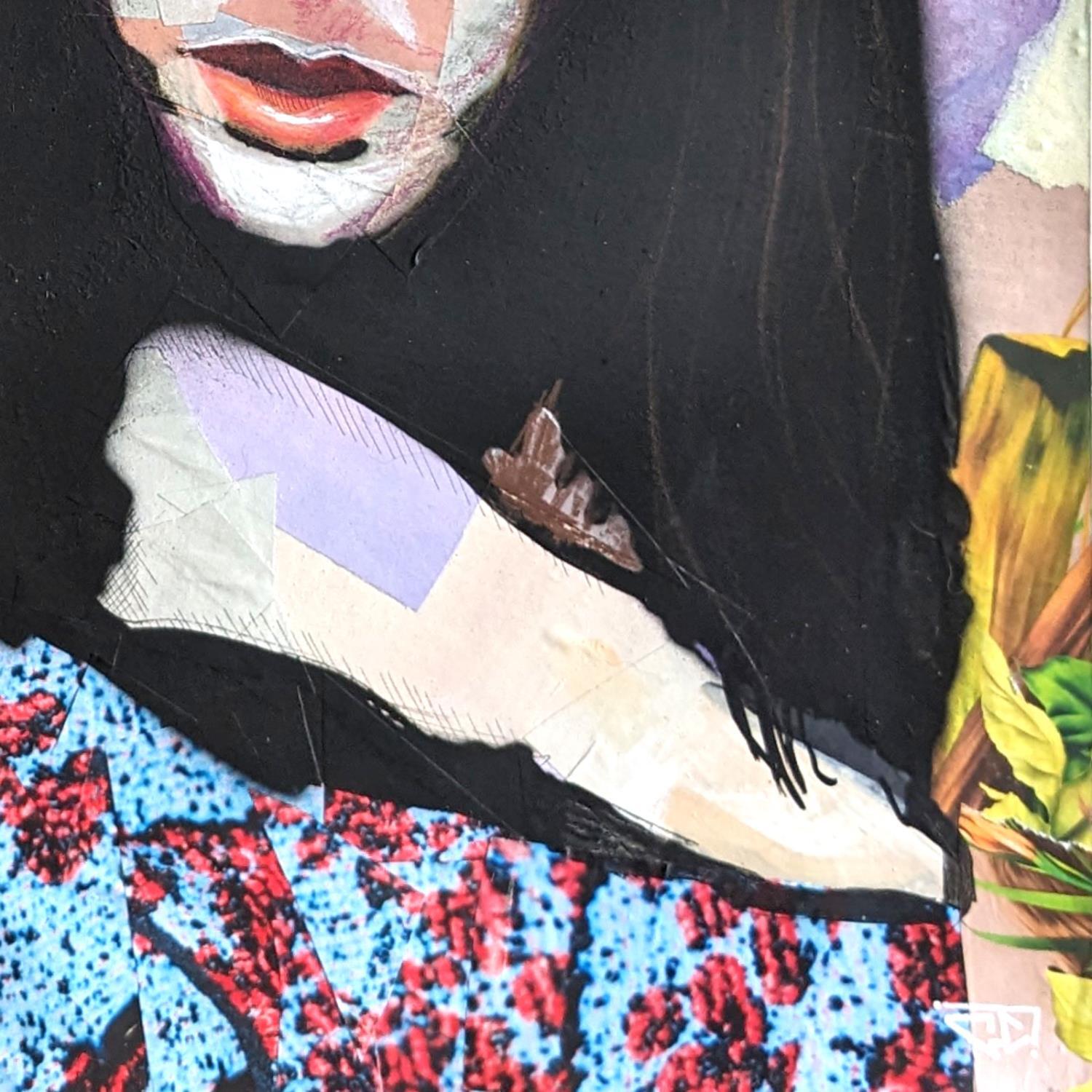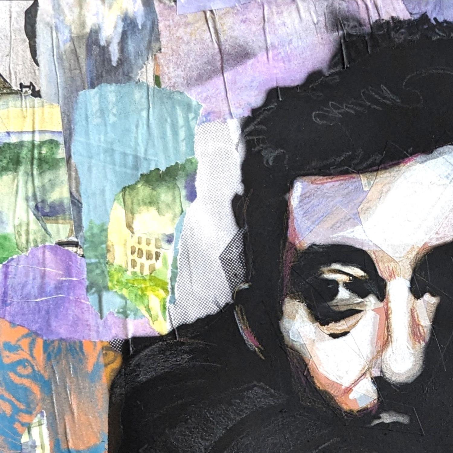 The artist used collage, ink, acrylic paint and pencils to create this small-format Pop-art-style painting on Paper on the theme of Pop Icons.