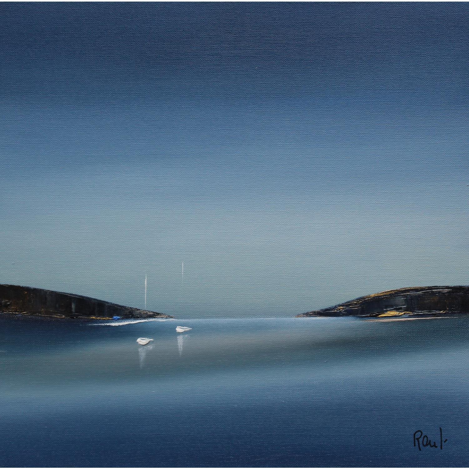 This unique and original contemporary artwork "Douce quiétude 55" on the subjects of Marine, Minimalist has been created by the contemporary artist Roussel Marie-Ange et Fanny.