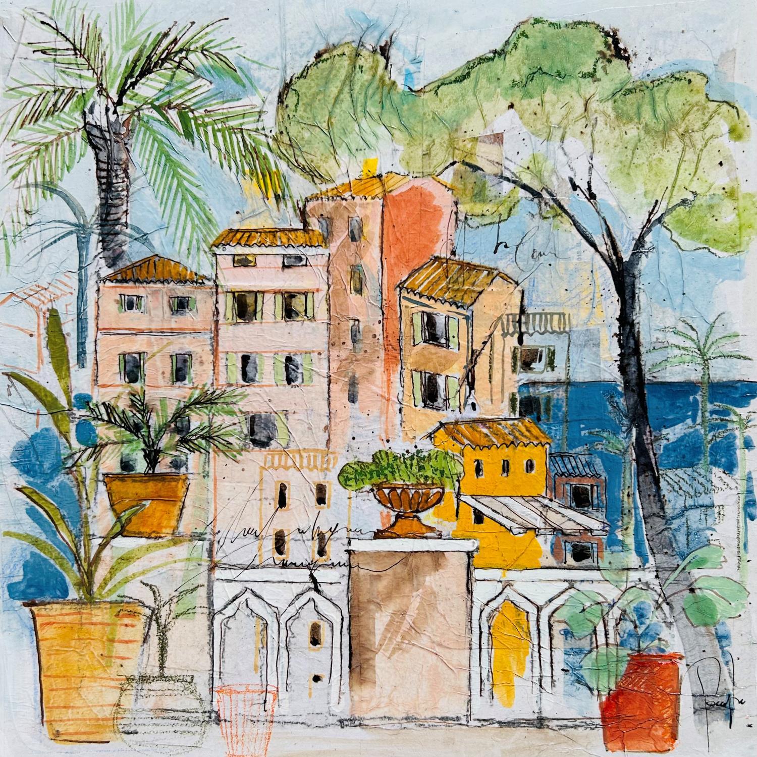 The artist used Watercolor, Acrylic, Gluing, Ink, Pastel media on Wood to create this Figurative, Small size painting.