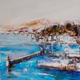 This unique and original contemporary artwork "nice entree au port" on the subject of Landscapes has been created by the contemporary artist Poumelin Richard.
